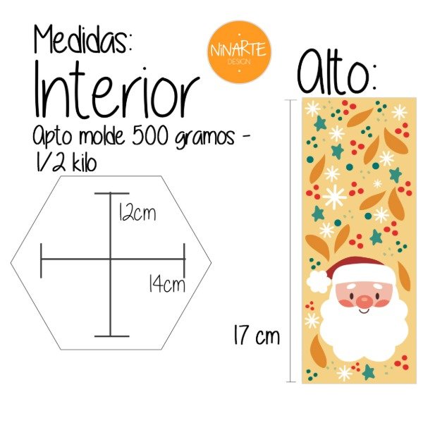 Entra molde de pan dulce de 1/2 kilo (500 gramos). Medir antes de compar o utilizar. La caja fue realizada con un molde universal de pan dulce de 500 gs. (no apta por ejemplo para pan dulce que levan sin molde)
