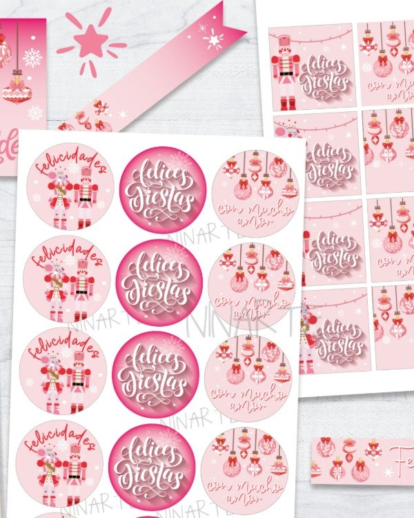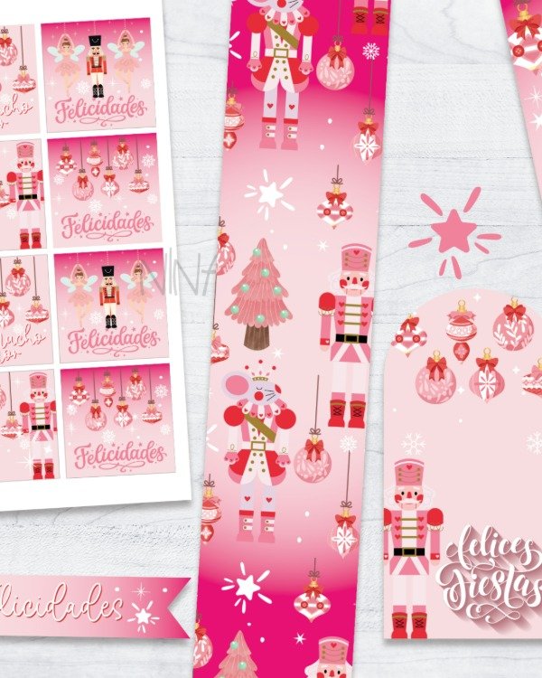KIT IMPRIMIBLE ETIQUETAS FELICES FIESTAS CASCANUECES PINK