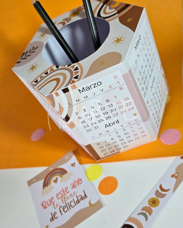 KIT IMPRIMIBLE CALENDARIO PORTA LAPICERAS 2026 BOHO