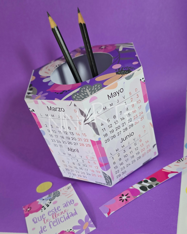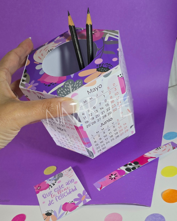 KIT IMPRIMIBLE CALENDARIO PORTA LAPICERAS 2026 FLORES LILA