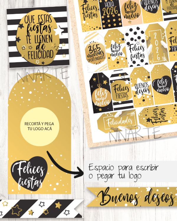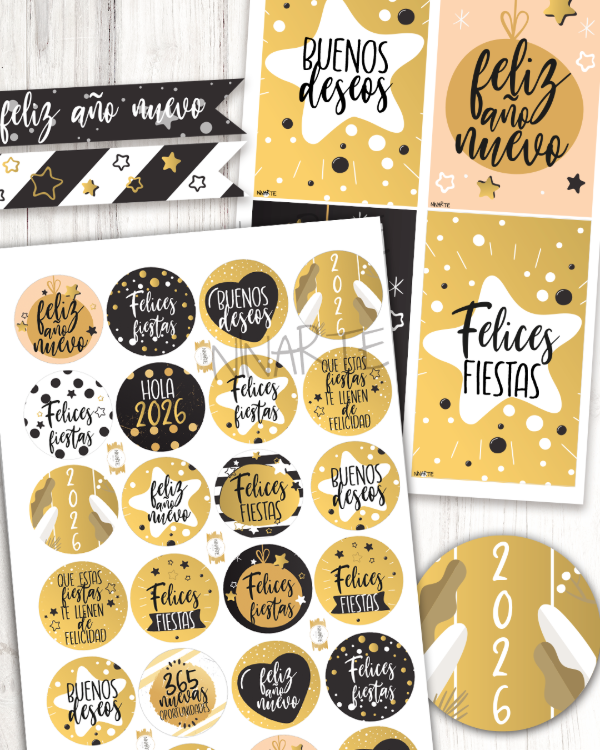KIT IMPRIMIBLE ETIQUETAS FELICES FIESTAS AÑO NUEVO 2024/2025